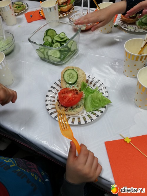 А сегодня с детьми посетили кулинарное мероприятие. Там дети слушали о вреде колы и макдональдса.. Жарили куриное филе и котлетки, делали полезный соус, отжимали сок из свежих фруктов.. А потом собирали невредные бургеры и ими угощались