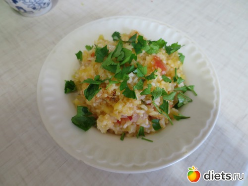 обед - тушеные кабачки с рисом и помидоркой (мои любимые)+ хлеб,