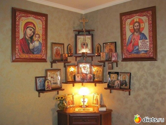 «В доме каждого православного обязательно должна быть икона Господа нашего Иисуса Христа и Крест. Это главная икона для каждого из нас. Также в домашнем иконостасе хорошо иметь икону Пресвятой Богородицы и святых, почитаемых в семье – покровителей тех, кто живет в доме, и тех, кому часто молится. Не стоит иметь слишком много икон, в домашнем иконостасе лучше иметь иконы тех, кому регулярно молишься».
