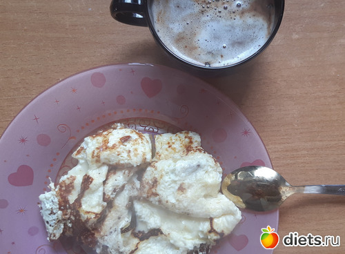 Завтрак:Омлет (яйцо+молоко+сулугуни 18гр) и кофе с молоком