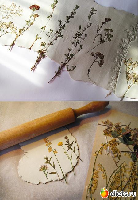 Мне кажется травы должны быть не сухие, а только что сорванные. А у меня практически сухие, поэтому они ломались под скалкой в труху. А какие могли быть украшения!!!!!! Весной попробую, сейчас уже все высохло.