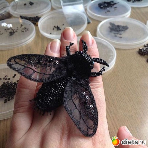 И вчера, после приезда домой! Ездила на предзащиту магистерской, на радостях сделала ещё две брошки