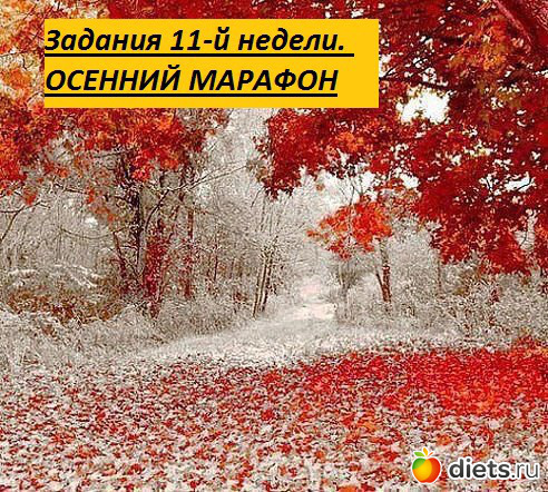 Всем привет!!! Принимайте задания одинадцатой недели! Срок выполнения - до следующего взвешивания, т. е. на будущей неделе - до 17 ноября включительно. Всем участвующим в выполнении:+ 100 к карме ))) - Подпитываем себя глубокой осенью, это не помешает!!! Задания поделены на 5 блоков: * спорт * питание * психология * красота * для души Выполнение заданий добровольное...