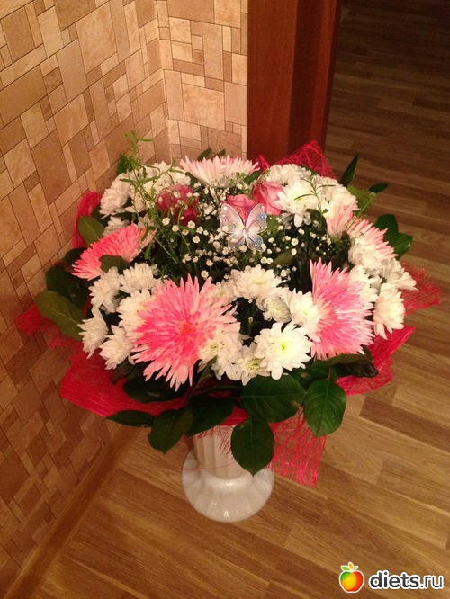 Букет цветов, купленный мною самой, похудеть мне не поможет, только потратиться. А когда его Катя раздерёт на части в первые же минуты пребывания дома, то ещё и стресс получу, который могу потом снять зефиром