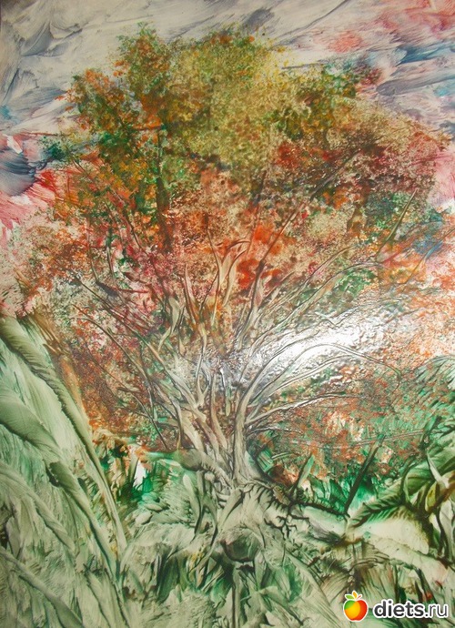 Сегодня получила огромное удовольствие, когда дочка отправила мне рисунок моего внука на тему "Осень"; а я вдруг вспомнила, что я тоже рисовала на эту тему, только не карандашом, а утюгом! И я увидела, что мы с Илюшей видим осень почти одинаково! Меня это очень порадовало!