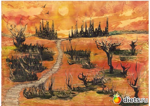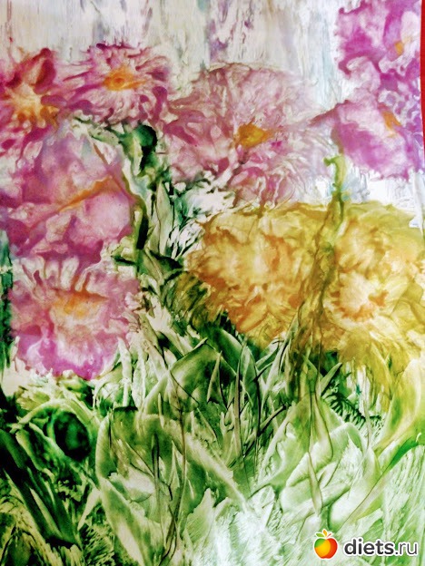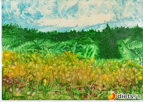 Эта техника называется энкаустика. Используется утюг с ровной подошвой (без отверстий), восковые мелки и гладкий картон. Я эту технику очень люблю, потому что рисовать не умею, а утюг с воском делают чудеса. Можно рисовать почти все, что угодно, даже портреты, но я до такого мастерства не доросла:-) А вот простенькие пейзажи пробовала