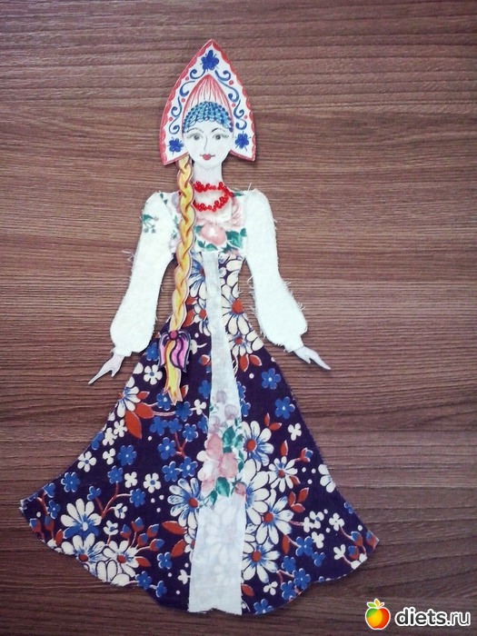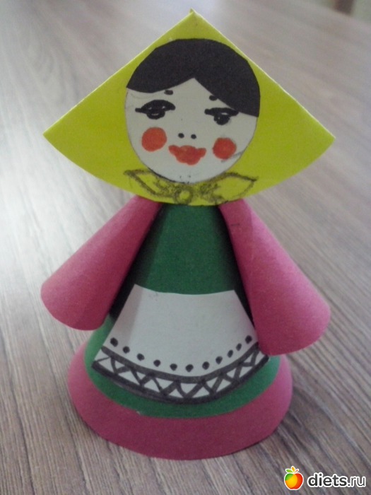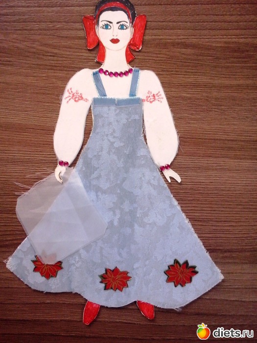 Эта куколка похожа на ёлочку, если нарядить её в зелёное платьице и красную косыночку