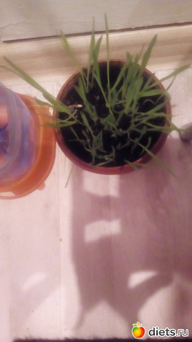 Насчет травки-я сею овес.Купили в зоомагазине-коробочку для попугаев.Она вот на фотке видна.Сею 2 2раза в неделю-расход очень маленький,колосится