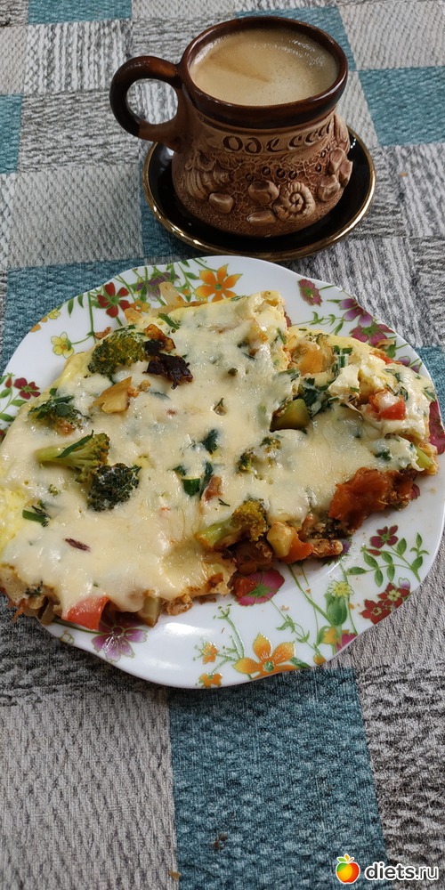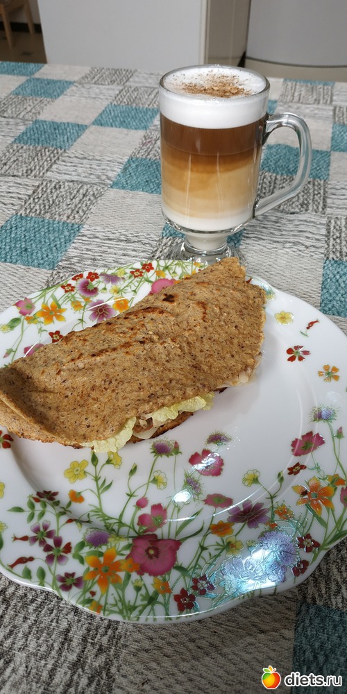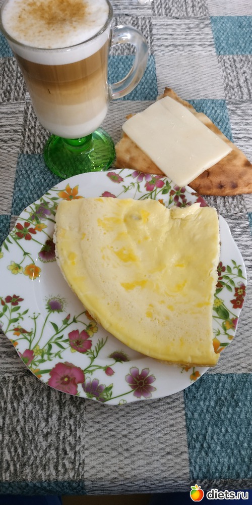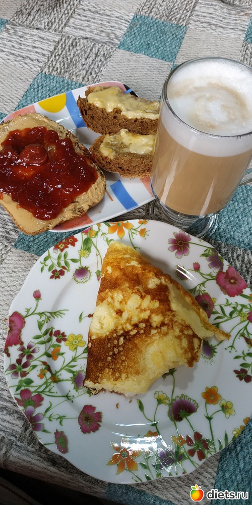 Омлет, цельнозерновой хлеб с сыром, и бутерброд с арахисовой пастой (натуральной без соли и сахара) и клубничное варенье на стевии
