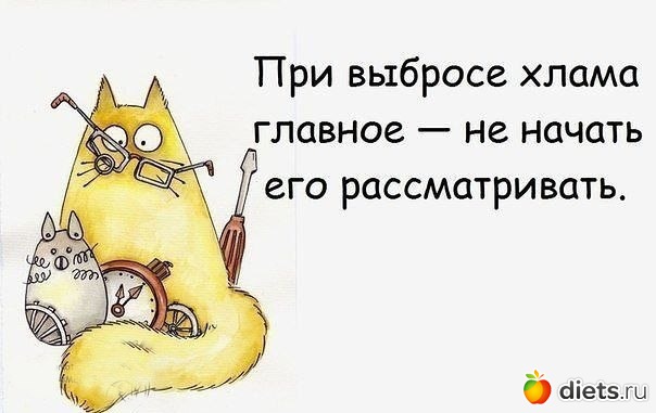 Выбрасывание вещей у меня происходит по необходимости, если износилось или морально устарело. Если могу - перешиваю, переделываю. Я сбросила не много веса, больших мне вещей оказалось 2-3, а вот маленьких - целый шкаф!