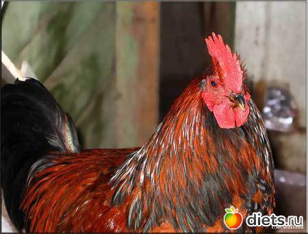 А в это время высоко в небе парили орлы и выглядывали себе что-нибудь на обед. И вот увидев такого симпатичного петушка во дворе, несколько птиц одновременно спикировали вниз. Завязалась большая драка, несколько птиц серьёзно пострадали, многие остались без перьев, а добыча досталась самому большому орлу!