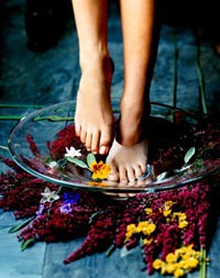 Ванночки для ног лучше делать вечером, а можно и в выходные дни - когда у Вас много свободного времени. Эти процедуры хорошо сочетаются с общим уходом за телом.