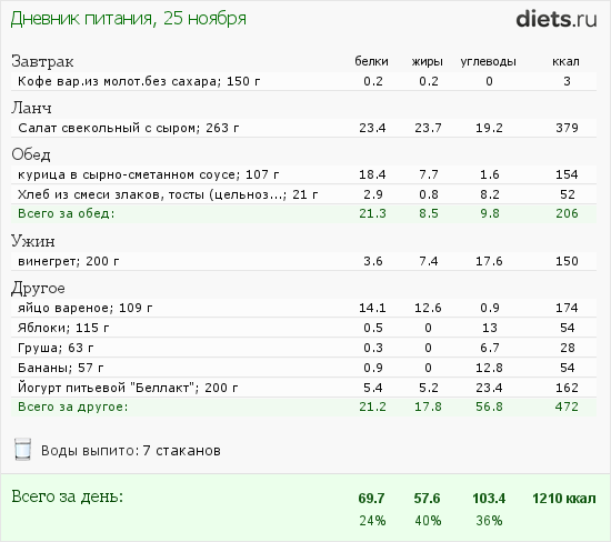Сегодня такое впечатление, что весь день что-то жевала, шутка ли - 7 приемов пищи. Это я еще фрукт утренний пропустила. Итак, сразу к отчету: