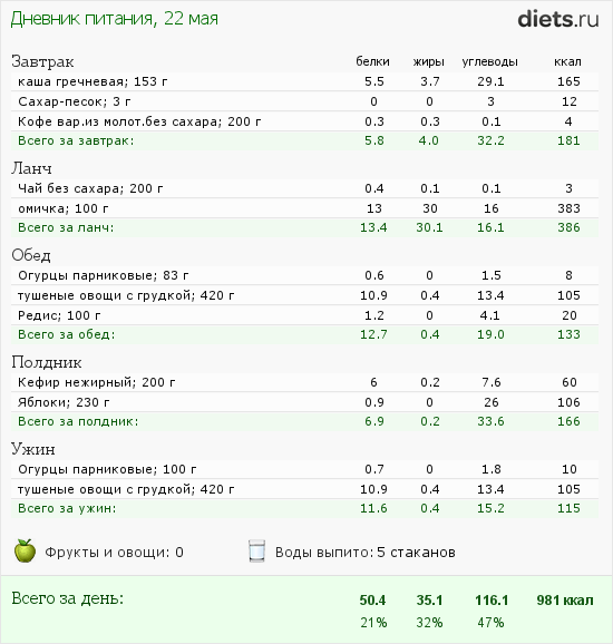 Калорийность продуктов
