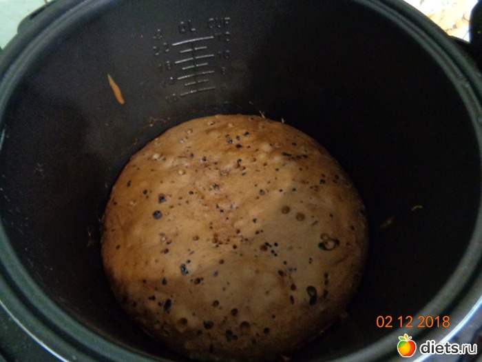 6. После звукового сигнала открыть крышку МВ и немного остудить пирог в чаше. (готовность проверить деревянной шпажкой).