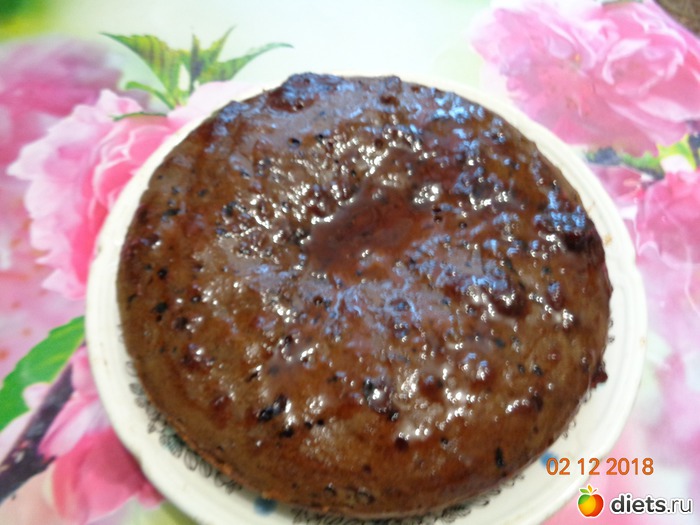 4. Тесто получается текучее, но не жидкое. Консистенция не очень густой сметаны. Вылить тесто в чашу МВ, разровнять. (чашу МВ можно смазать раст. маслом).