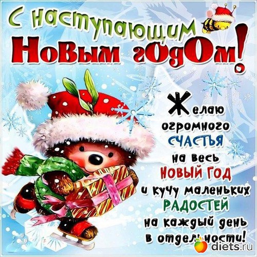 Пусть в новом году дни проходят так же ярко и весело как новогодние! Неприятности тают сами собою, как снег на ладошках! Пусть всё загаданное под бой курантов исполнится, а Дед Мороз, даже зимую на Северном полюсе, осуществляет желания все 365 дней в году!