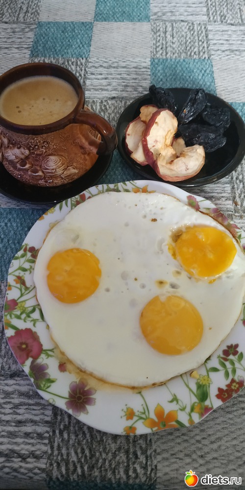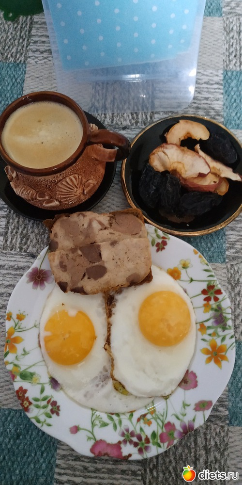 Глазунья из 2-х яиц, домашняя ветчина, сухофрукты домашние