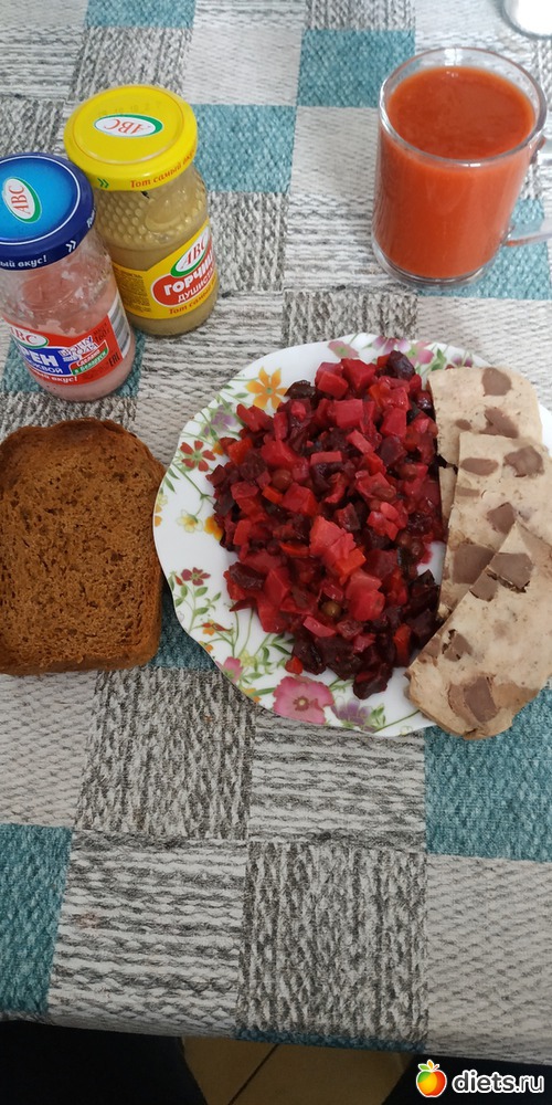 Винегрет, домашняя ветчина, томатно-сельдереевый сок