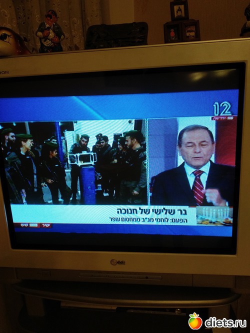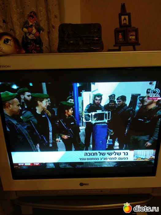 Сегодня третий день Хануки и вот, очень трогательно, ведущий вечерних новостей в прямом эфире поет молитву вместе с солдатами-пограничниками во время зажигания третьей ханукальной свечи.