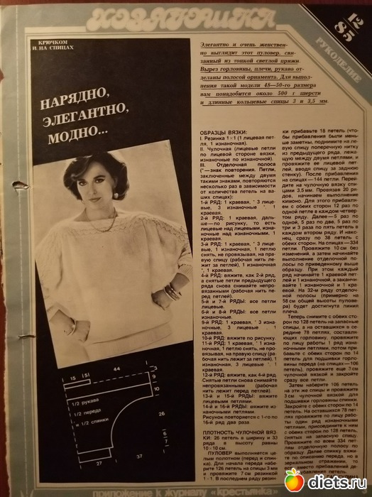 Далее страничка для вязальщиц - симпатичный пуловер с рукавом "летучая мышь":