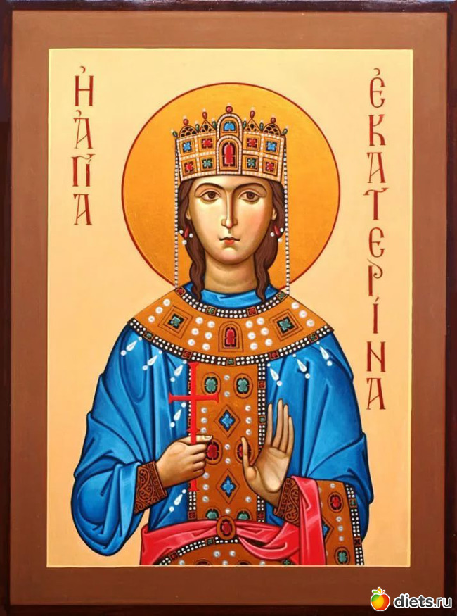 Святая Екатерина Великомученица покорно склонила голову под топор палача и умерла с Иисусовой молитвой на губах за то, в чем помогает икона – за веру и преданность.