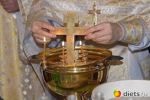 «Господи, Боже мой, да будет дар Твой святый и святая Твоя вода во оставление грехов моих, в просвещение ума моего, в укрепление душевных и телесных сил моих, во здравие души и тела моего, в покорение страстей и немощей моих по беспредельному милосердию Твоему молитвами Пречистыя Твоея Матери и всех святых Твоих. Аминь.»