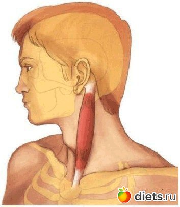 Эти мышцы при одностороннем сокращении наклоняют голову в свою сторону, одновременно лицо поворачивается в противоположную сторону.