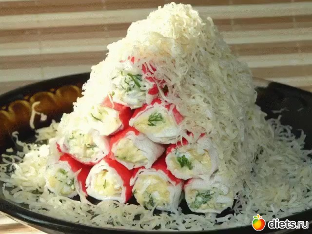 Соединить яйца, сыр, зелень и чеснок и серединку крабовых палочек.