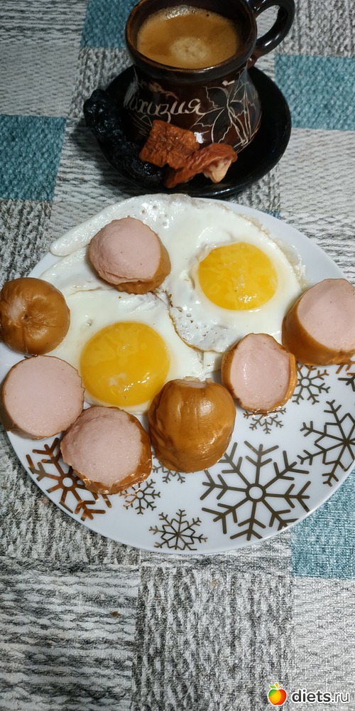 Глазунья из 2-х яиц, Куриная сарделька