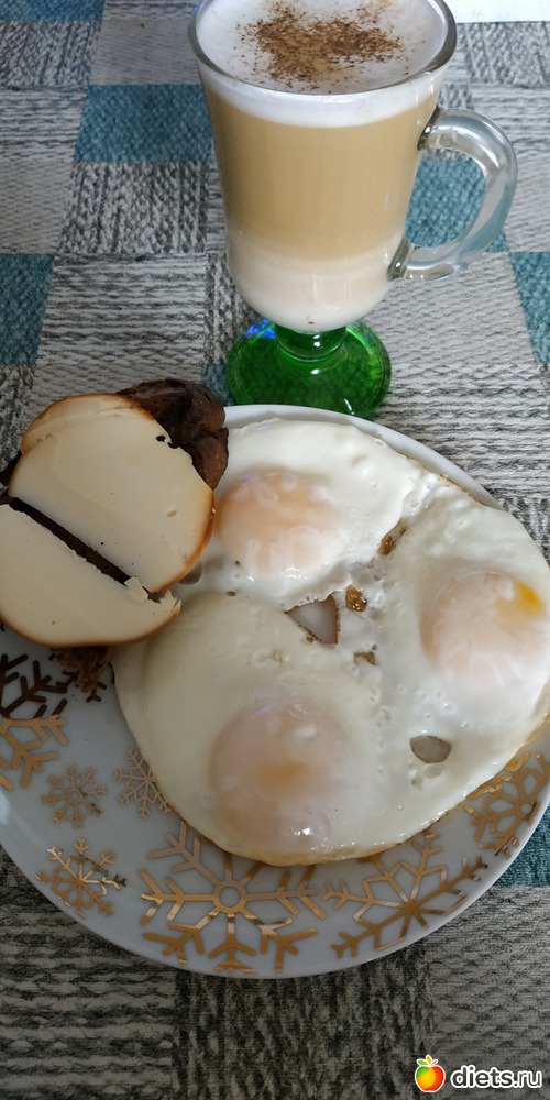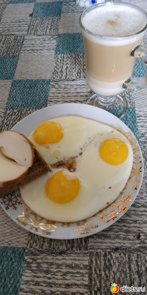 Глазунья из 3-х яиц, черный хлеб, колбасный плавленный сыр