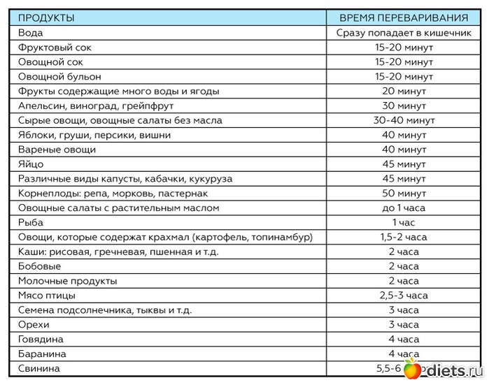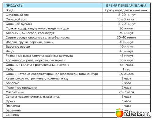 Эта таблица поможет Вам контролировать процесс переваривания пищи. Учитывая время переваривания пищи, Вы сможете держать себя в форме!
