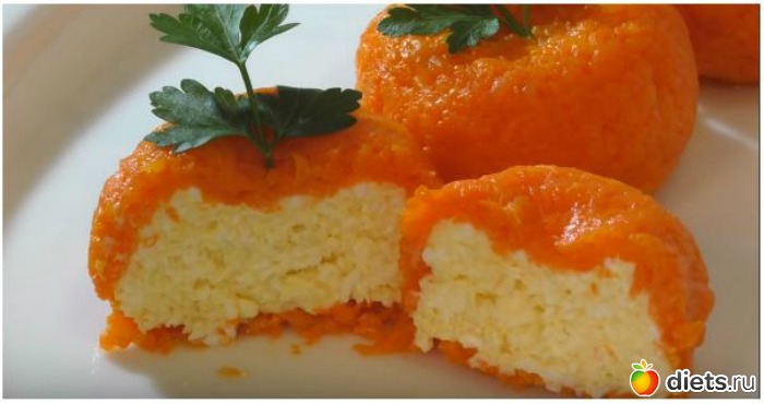 7. Смоченными в воде руками сформируйте из тертой вареной моркови блинчик и обтяните им вашу заготовку.
