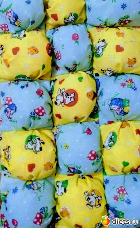 Нет, я собираю ряды из семи квадратов и соединяю их. Сейчас у меня три ряда сшиты между собой, сегодня должна сделать еще два ряда и половина будет готова! У Алеши коляска темного цвета, поэтому решила сшить веселенькое одеялко .