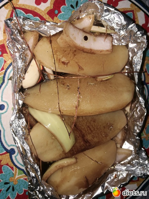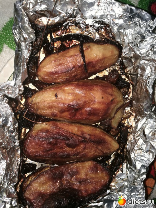 Запекаю до золотистого цвета. Чеснок делается черным, но он такой вкусный запеченый-никогда бы не подумала.