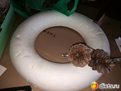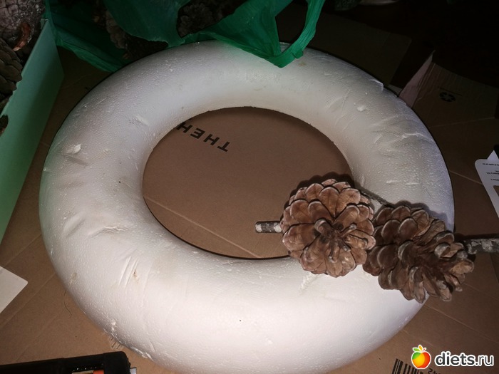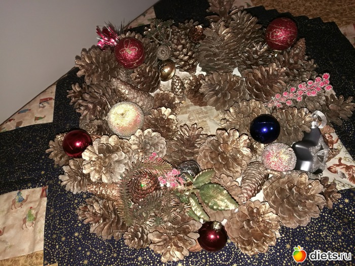 Надумалось мне сделать венок из шишек. Насобирала четверть мешка, думала:"Ну куда столько?"