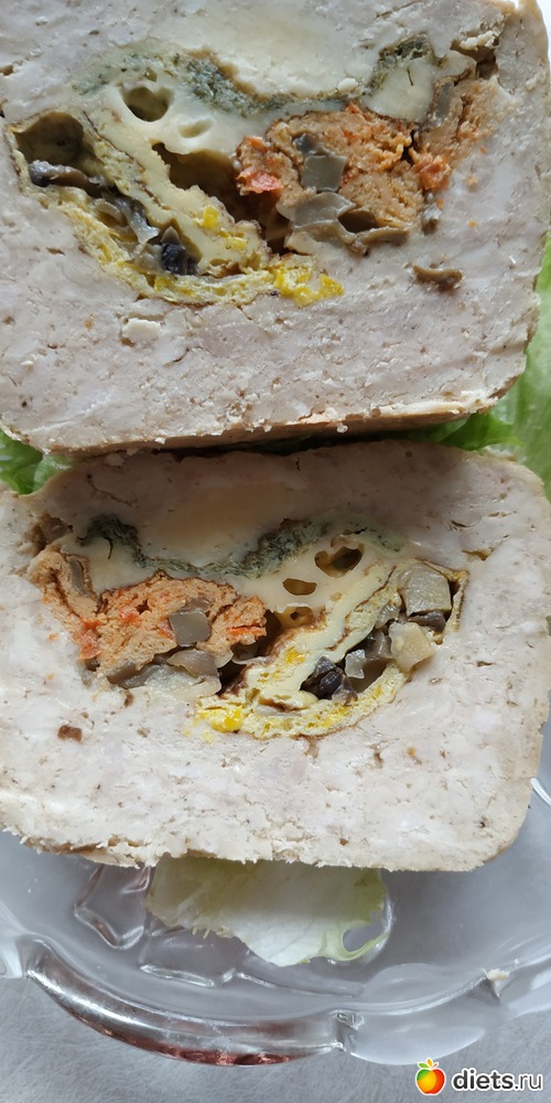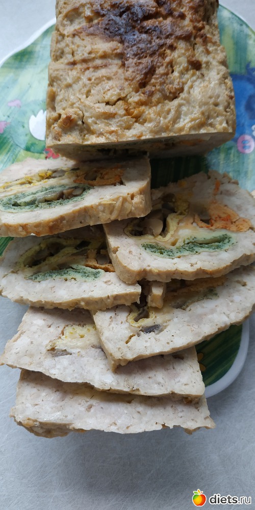 Грудку и бедра перекрутить на фарш, 1 луковицу измельчить в блендере с 60 мл молока, добавить специи хорошо вымесить, берём форму, у меня как длинный хлебушек, выстилаете ее или пергаментом или антипригарные ковриком накладываем фарш в форму на дно и по стеночкам так чтобы внутри оставить место для начинки, немного фарша оставляем чтобы сверху накрыть.