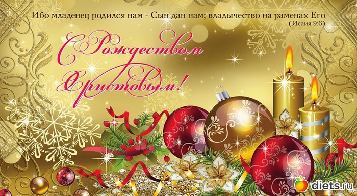 Поздравляю вас с Рождеством Христовым! В этот светлый праздник хочется пожелать мира и спокойствия в каждом доме, добра, взаимопонимания, достатка, любви, счастья, душевного равновесия, успехов во всех начинаниях, побольше радости, крепкого здоровья и всех благ! Пусть оправдаются все ожидания и сбудутся самые заветные мечты!