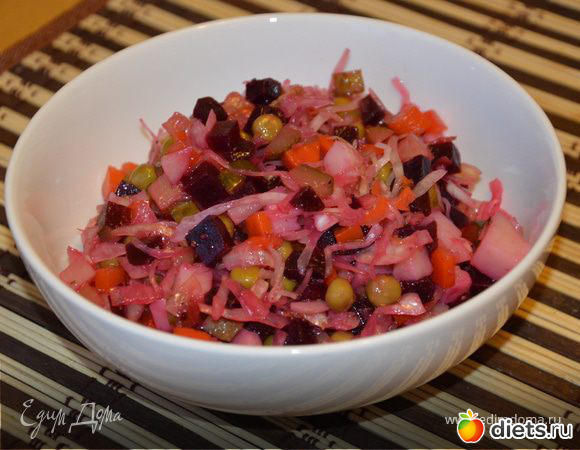 Вчера я снова заведомо обеспокоилась рационом не только своим, но и семейным. Итог: винегрет (для всех нас) и плов с курицей для домодчадцев. Завтрак: вода с медом и лимоном, 2 банана; обед: винегрет и картофельное пюре, кусок зернового хлеба; ужин: винегрет и немножко риса из плова повылавливала в тарелке у мужа. Из жидкости в течение дня буквально 2 кружки воды, остальное чай зеленый, насчитала 5 кружек)))