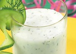 Огурец помыть, высушить, очистить, натереть и отжать сок. Добавить сметану, сок лимона, огурца, соль и сахар в блендер. Тщательно взбить до образования однородной массы. Затем добавить молоко и еще раз перемешать. Полученный коктейль перелить в стакан. Украсить серпантином из огурца.