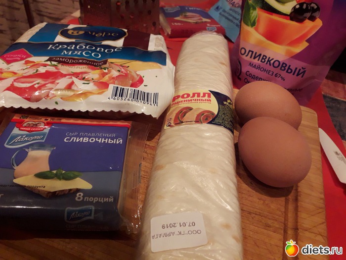 -ЛАВАШНЫЙ РУЛЕТ С КРАБОВЫМ МЯСОМ, СЫРОМ, ЯЙЦАМИ
