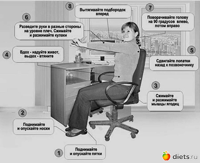 "Эта гимнастика отнимает ровно 6 минут, но делать её надо каждый день, каждый час. Упражнения можно выполнять сидя, при ходьбе, на рабочем месте, при готовке - где угодно. Уже через три дня вы удивитесь, как подтянулись ваши мышце и стрелка весов начала двигаться в обратном направлении. Вы спросите, как долго нужно ею заниматься? Постоянно. Но не пугайтесь, так вы сами со временем поймёте, что это не сложно и будет для вас обычным делом.