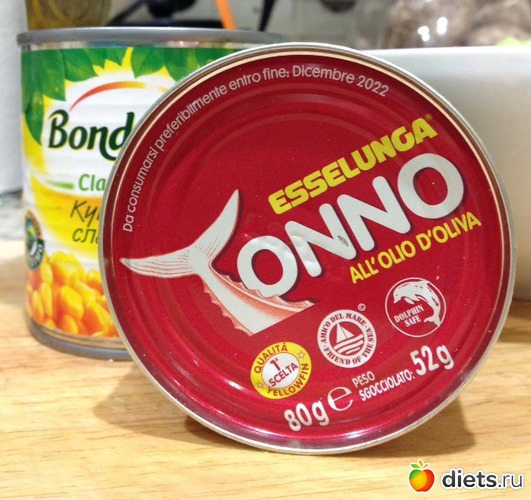 Набралось 1200, и я решила гульнуть: сделать любимый салат из консервированного тунца.