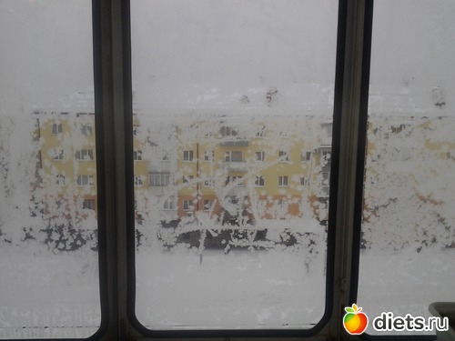 Вот так окна балкона выглядят, минус 21, солнышко облаками/тучами закрылось... Сумрачно, серо... Ждать какого лета нам? Будем ждать любое!