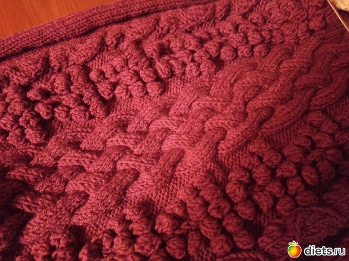Это в 2 нити, связала спинку и перед, поняла, что с рукавами будет весит 2 кг: