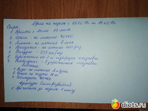 Цели на неделю с 08.02.19 по 14.02.19