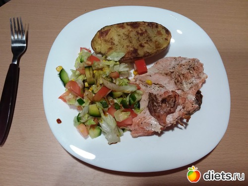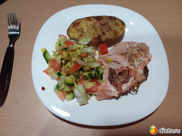 Ужин: лосось и картофель гриль, салат (в этот момент решила начать фотографировать все, может, однажды это остановит меня от нарушения)