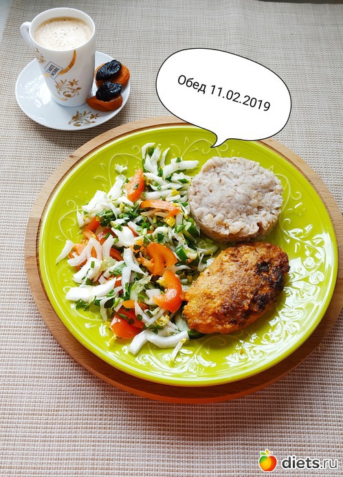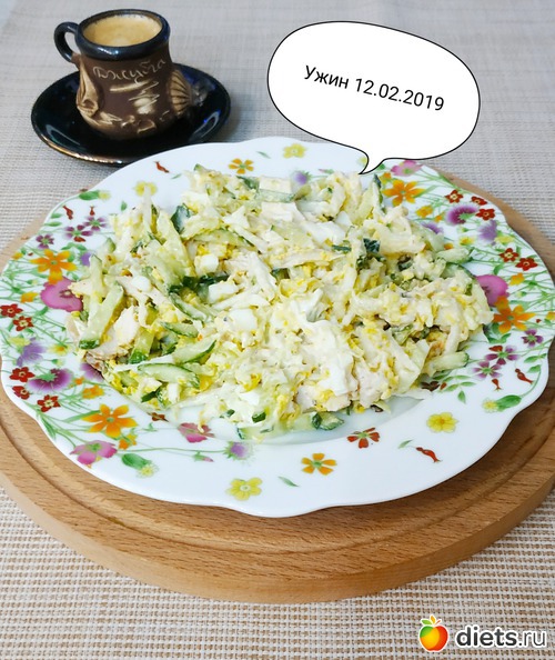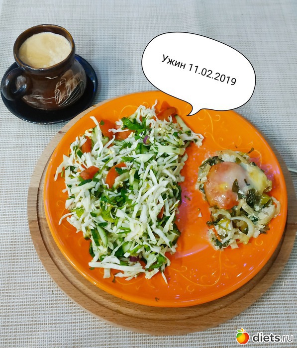 Салат из свежих овощей 150 (из чего салаты читай в посте от 15.01.20019) заправленный 1 чайной ложкой растительного масла