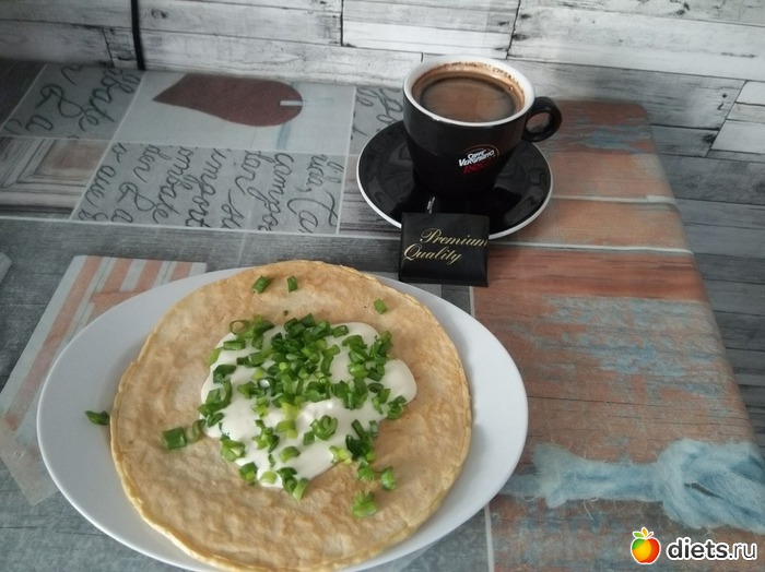 На завтрак сегодня был мой распрекрасный овсяноблин с плавленным сыром и луком, еще чашка кофе и маленькая шоколадка с мятой.