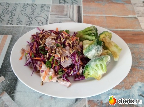 Обед в рамках недельных заданий клуба - капустный салат с индейкой и брокколи: